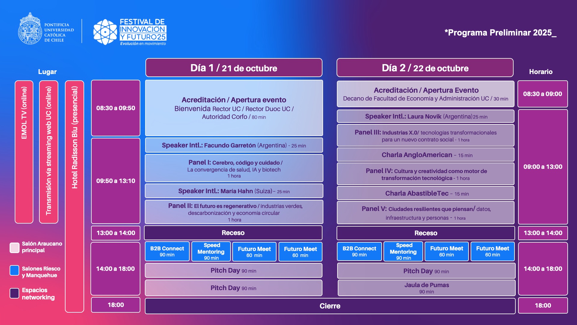 El Festival de Innovación y Futuro UC es el evento más importante que conecta a la academia y el ecosistema UC con los principales actores de innovación y emprendimiento.